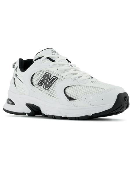 Zapatillas New Balance 530 con la N negra en color blanco para chica y chico, modelo MR530EWB estilo running de calle fabricado con piel sintética, nylon de red, cordones y entresuela ABZRB. Todo un clásico inspirado en los tenis de moda para correr que mezcla innovadoras tecnologías de amortiguación con perfiles retro, en las zapas MR530 prima la comodidad y eso se palpa en los ambientes donde se mueve este tipo de tenis. Crea tu look más atrevido con las 530 New Balance blancas y etiquétanos en instagram con los siguientes hastag #newbalance #newbalance530 #mr530