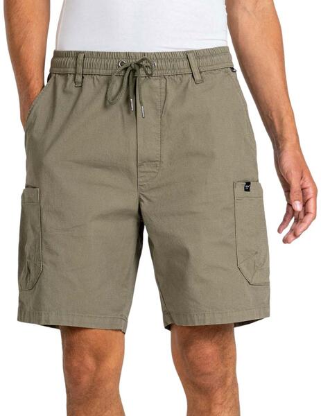 Pantalón corto con bolsillos de la marca Reell en color verde militar para hombre, modelo Reflex Easy Cargo Short Olive. Bermudas cómodas con goma elástica y cordón tipo chándal que están confeccionadas en mezcla de algodón y elástico. La prenda incluye etiquetas personalizadas con logo Reell jeans. Además, este short puedes adaptarlo a diferentes situaciones creando looks adecuados al estilo que precises. #reell #reelljeans #pantalonesreell