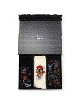 Caja de calcetines Jimmy Lion con gráficos de Jean Michelle Basquiat, modelo At Basquiat Pack II que se vende en una caja personalizada que contiene 3 pares. ¡Si piensas comprar calcetines divertidos o quieres realizar un regalo original piensa en la firma Jimmy Lion! La marca de calcetines españoles se ha especializado en conseguir que sus diseños sean todo un objeto de deseo para los amantes de las últimas tendencias. Además, se ajustan perfectamente al pie, están elaborados con materiales de alta calidad y sirven para completar un look de lo más simpático. #jimmylion #calcetinesdemarca #calcetinesdivertidos